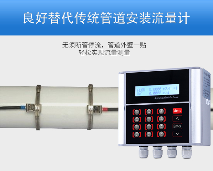 聯(lián)測超聲波流量計適合相對純凈液體流量的管外測量,尤其是在水流量測量、在工業(yè)循環(huán)水、空調(diào)制冷循環(huán)水、原水、高壓水、自來水,污水排放管等廣泛應用。