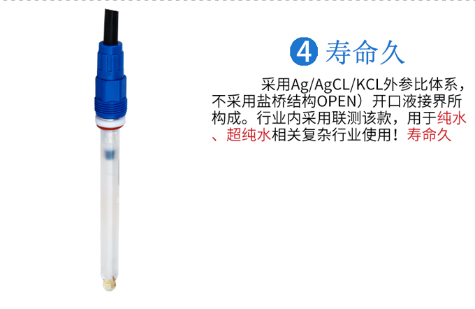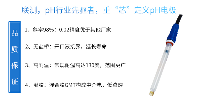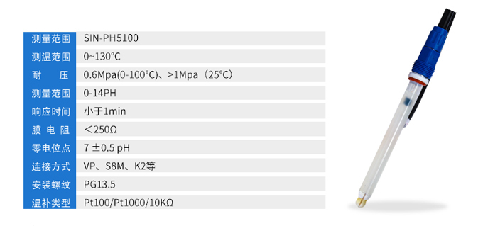聯(lián)測SIN-pH5100電極使用耐壓半球形pH敏感膜,混合膠GMT構成的中介電介質,Ag/AgCL/KCL外參比體系,無鹽橋(OPEN)開口液接界所構成。廣泛用于純水和高純水以及復雜的化工流程。