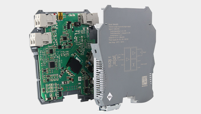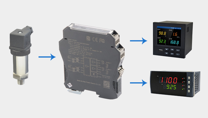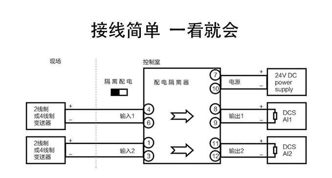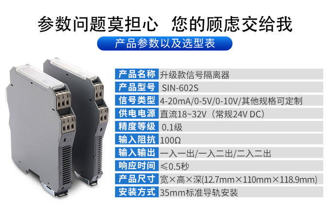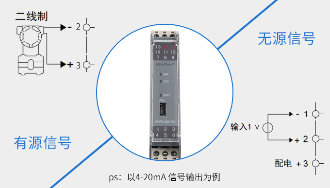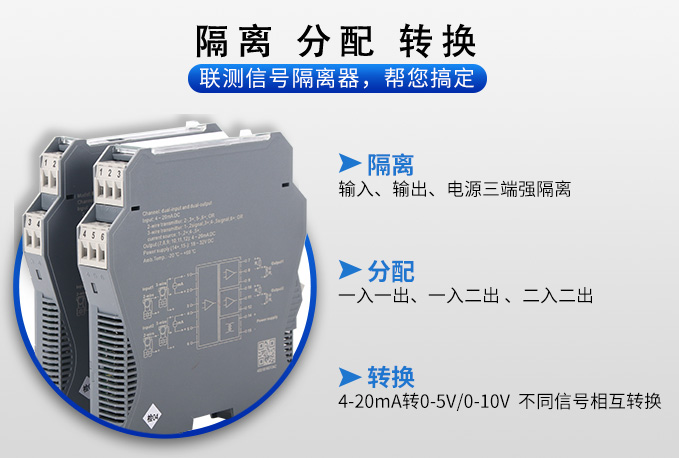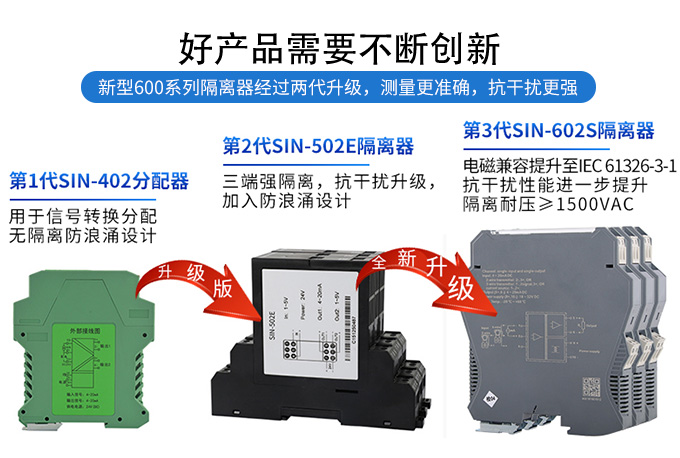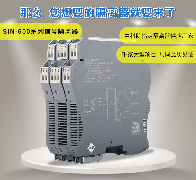 新款隔離器可向變送器提供隔離的工作電源,同時檢測回路中的電流,經(jīng)隔離變送輸出電流或電壓信號。 輸入端、輸出端及電源端三端隔離,具有響應(yīng)快、功耗低、溫度特性好等優(yōu)點。