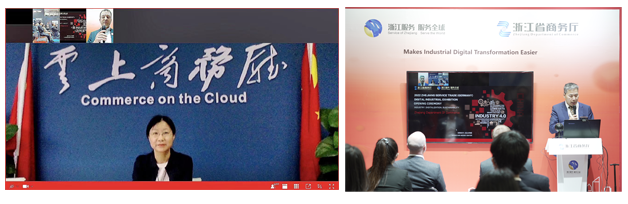 此次漢諾威工博會,我司同阿里云、三維通信、舜云互聯(lián)、申昊科技等多家浙江知名企業(yè)共同亮相浙江省商務(wù)廳主辦的2022浙江服務(wù)貿(mào)易(德國)數(shù)字工業(yè)展,向全世界展現(xiàn)“浙江服務(wù) 服務(wù)全球”的魅力。當(dāng)?shù)貢r(shí)間5月30日上午,浙江省駐德國商務(wù)代表處主任張漢東在現(xiàn)場主持工業(yè)展開幕式,浙江省商務(wù)廳服務(wù)貿(mào)易處處長莊謹(jǐn)在線出席開幕式。