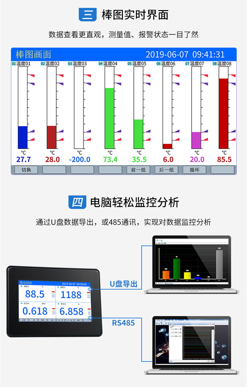 SIN-R5700C觸摸超薄無紙記錄儀采用新型大規(guī)模集成電路,對輸入、輸出、電源、信號采取可靠保護(hù)和強(qiáng)抗干擾設(shè)計(jì)。8路萬能信號輸入(可組態(tài)選擇輸入:標(biāo)準(zhǔn)電壓、標(biāo)準(zhǔn)電流、熱電偶、熱電阻、毫伏等)。可帶4路報(bào)警輸出,1個(gè)饋電輸出,RS485通訊接口,以太網(wǎng)接口,微型打印機(jī)接口和USB接口,SD卡插座;具有強(qiáng)大的顯示功能,實(shí)時(shí)曲線顯示,歷史曲線追憶,棒圖顯示,報(bào)警狀態(tài)顯示。